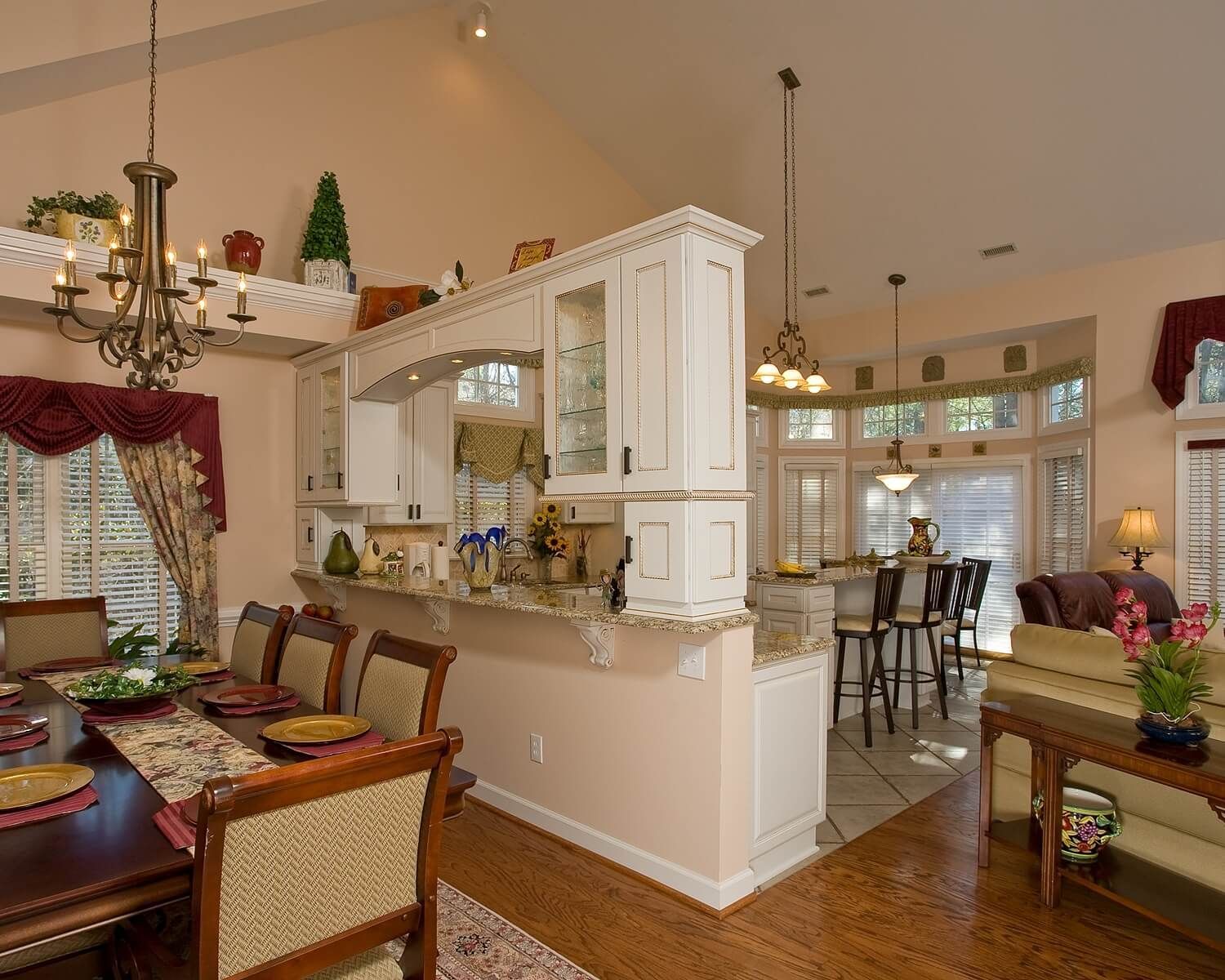To elevate the design even further, we took great care in selecting a stunning Showplace cabinet bridge. This meticulously chosen cabinet bridge not only complements the existing decor but also adds a touch of distinction and refinement to both the kitchen and dining areas. It serves as a captivating focal point, drawing the eye and creating an impressive visual impact.