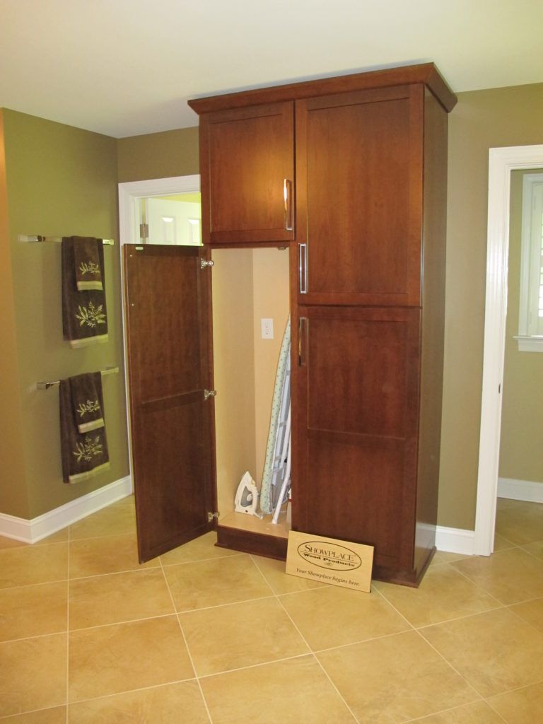 Ascending to the second floor, we unveiled a newly remodeled guest bathroom exuding both elegance and comfort, complete with a thoughtfully crafted tub/shower combination that seamlessly adjoins an inviting laundry room. The owner’s bedroom proved to be a haven of convenience, with a carefully integrated broom cabinet featuring an embedded ironing board. The double vanity, adorned with a majestic tower fashioned from Showplace cabinetry, imparted a touch of opulence and sophistication to this personal sanctuary.