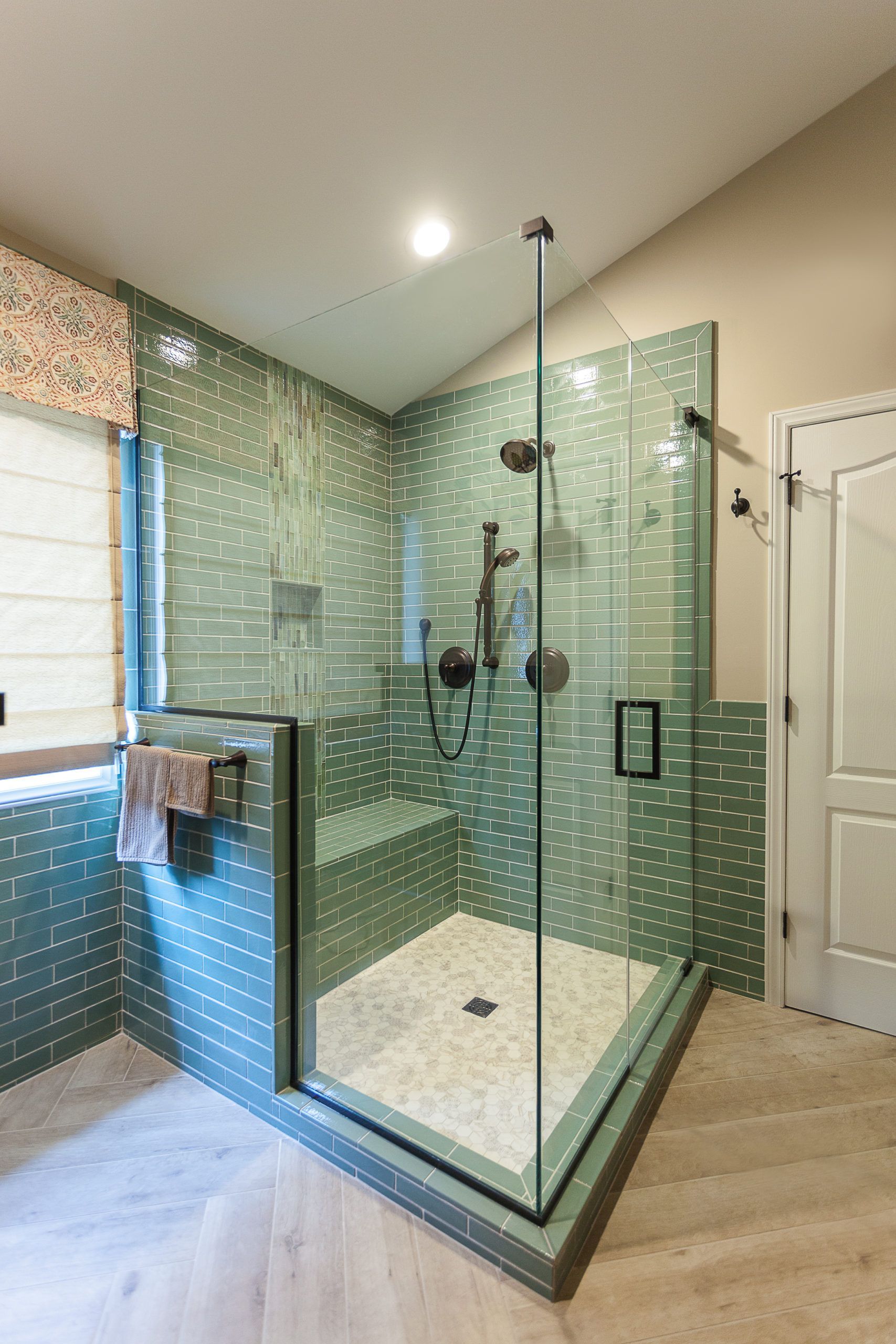 Not content with just upgrading the shower, the homeowners went the extra mile to create a bathroom floor that is nothing short of breathtaking. They chose a stunning herringbone pattern that effortlessly blends style and functionality, elevating the overall aesthetics of the space. The result? A bathroom that not only serves its purpose but also delights the senses with its harmonious design.