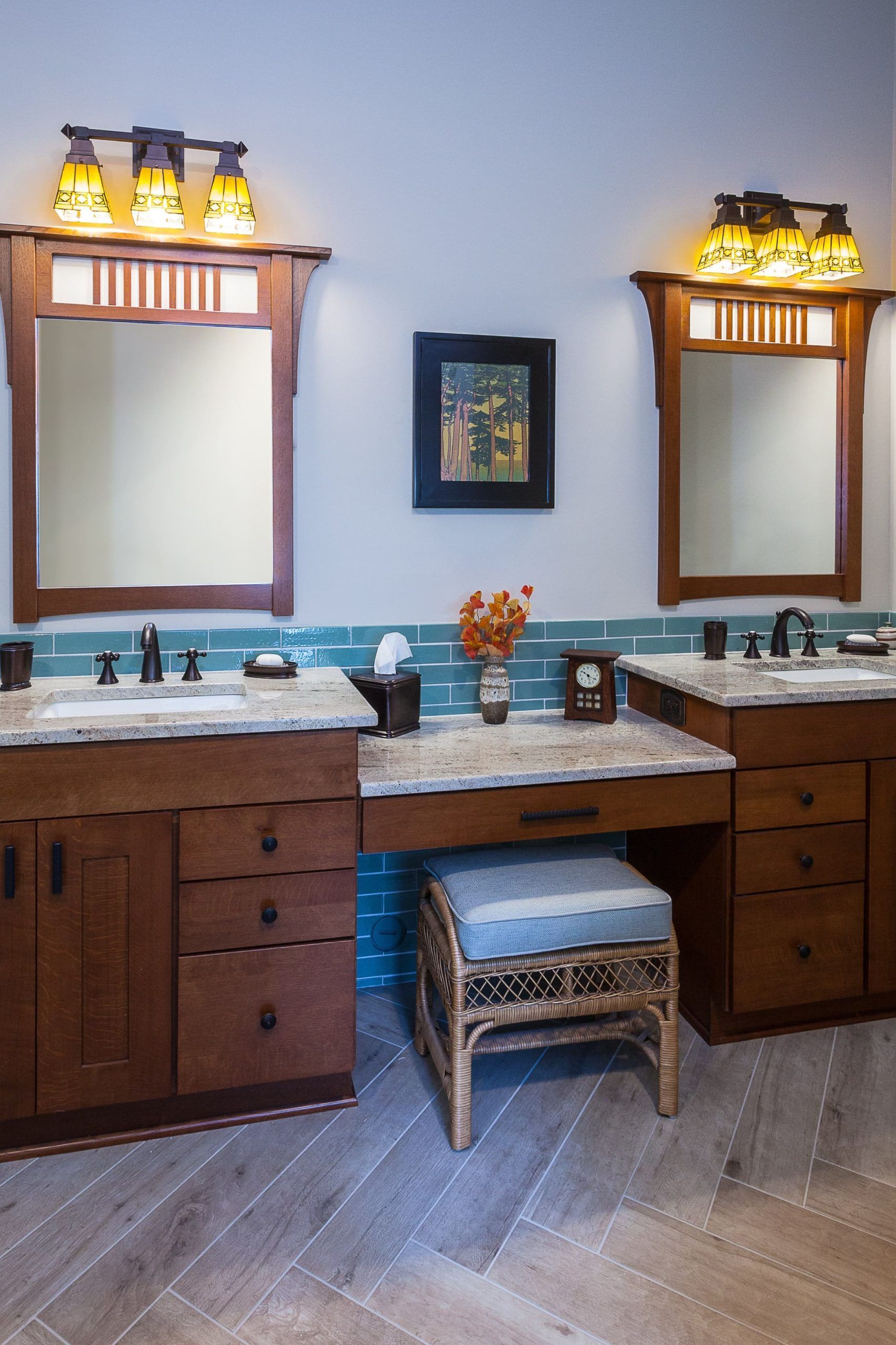 To uphold the vintage charm that the homeowners deeply adored, our team guided them in selecting quarter sawn oak cabinetry for all the remodeled spaces. This thoughtful choice not only adds warmth and charm to the rooms but also provides ample storage, ensuring a clutter-free environment. Now, everything has its rightful place, creating an organized space that feels like a breath of fresh air.