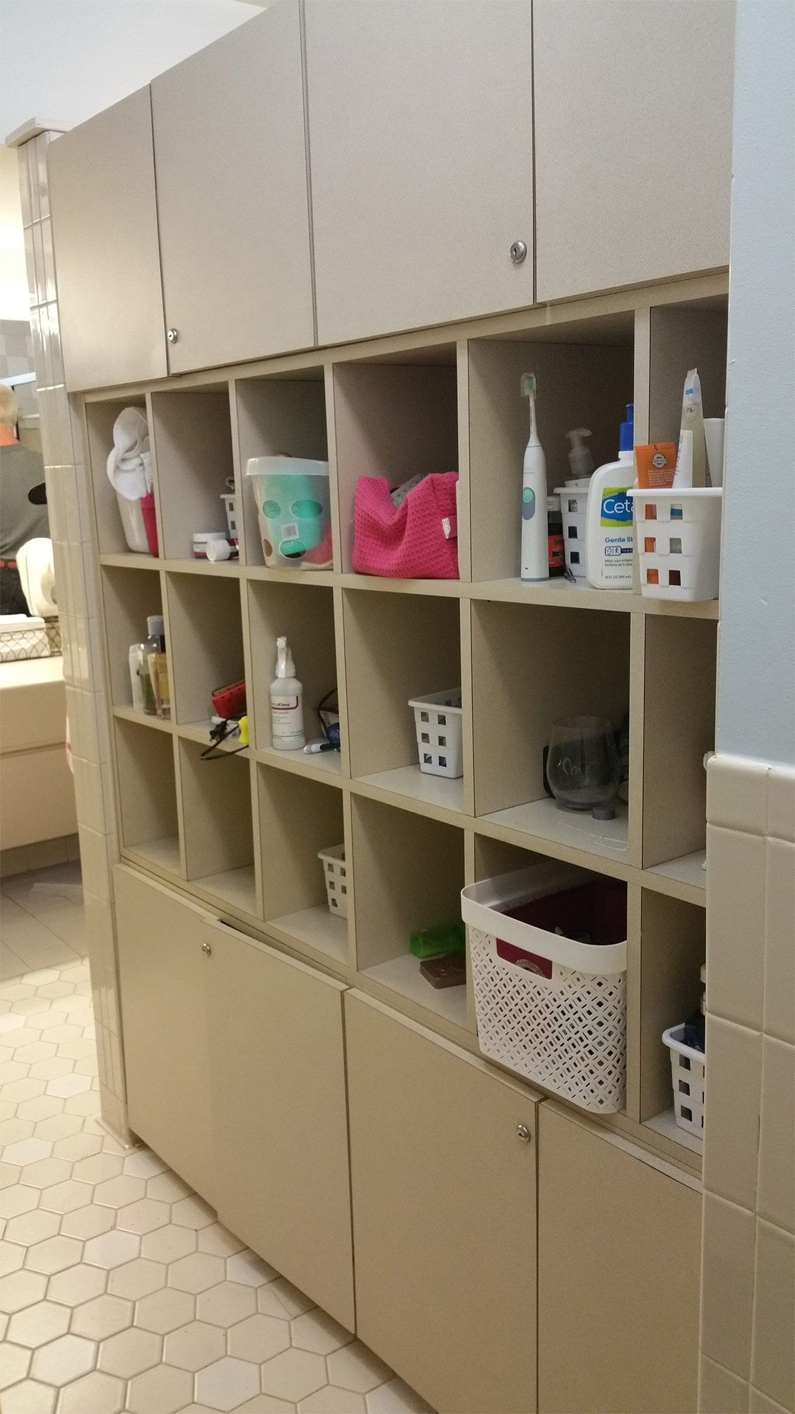 Moreover, we integrated the exceptional Showplace line of cabinetry, renowned for its superior craftsmanship and unparalleled quality. This allowed us to create custom storage solutions for toiletries, cleverly incorporated right within the shower area. The innovative design maximizes the functionality of the space while adding a touch of luxury, truly transforming the bathroom into a serene haven.